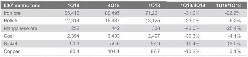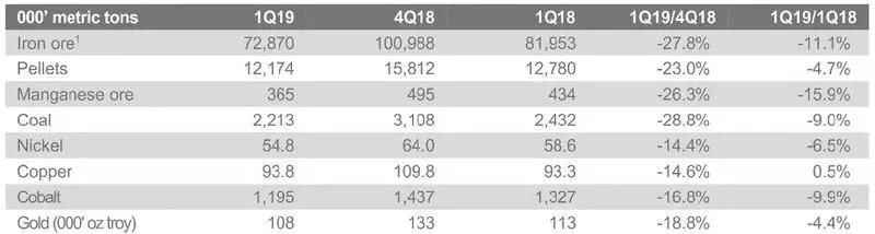 日前,淡水河谷發(fā)布2019年第一季度產(chǎn)銷量報(bào)告。