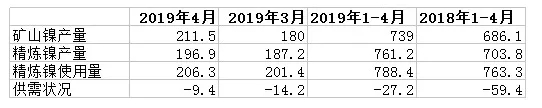 INSG補充稱,今年前四個月,全球鎳市供應短缺27200噸,去年同期短缺59400噸。
