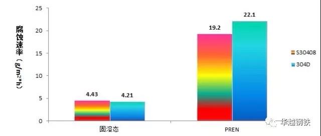 實(shí)驗(yàn)結(jié)果:304D的耐點(diǎn)腐蝕能力與S30408相當(dāng)。