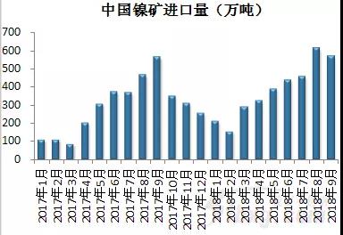 10月進口鎳礦607.97萬噸,較9月增加42.66萬噸,環比增幅7.55%;較去年同期增加257.94萬噸,同比增幅73.69%。