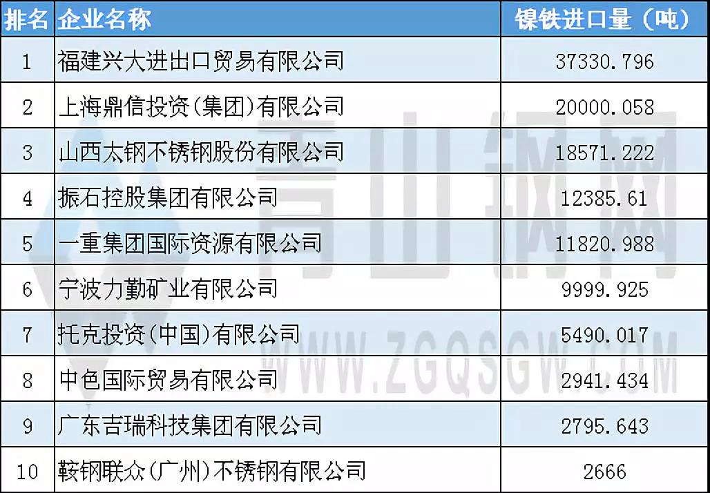 2019年2月鎳鐵 鎳礦前10大進口企業 C4鋼球閥